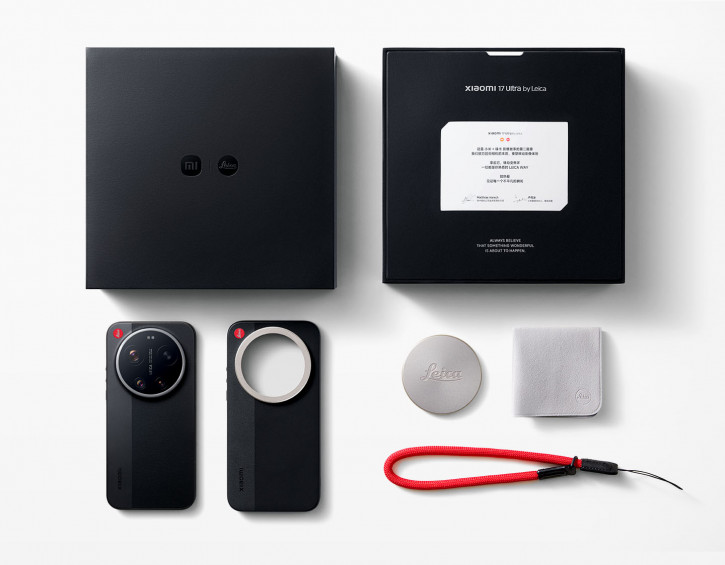 Отдельного внимания заслуживает Xiaomi 17 Ultra Leica Edition. Версия получила двухцветный корпус в стиле камер Leica M, фирменную красную точку, механическое кольцо управления съёмкой и эксклюзивные режимы обработки Leica Moment с плёночными пресетами. В комплекте — подарочный бокс с аксессуарами в стиле камеры.