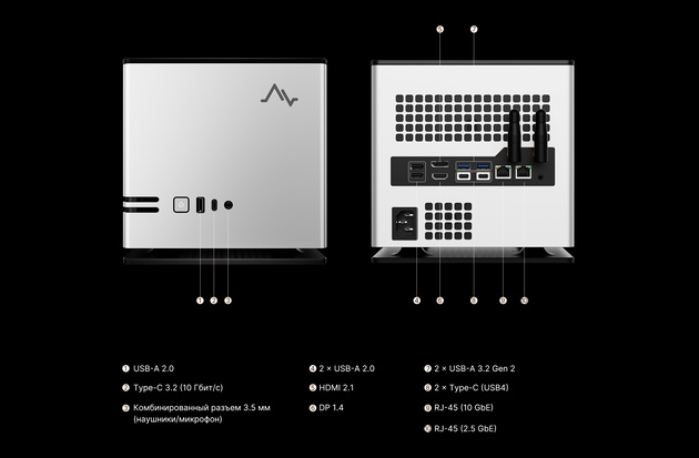 Maibeben PC95A работает на базе 16-ядерного процессора AMD Ryzen AI MAX+ 395, который объединяет в себе передовую вычислительную архитектуру Zen 5, графическую архитектуру RDNA 3.5 и нейронную архитектуру XDNA 2. Его максимальная тактовая частота составляет 5,1 ГГц , а максимальный TDP — 140 Вт. Это открывает широкие возможности по выбору сценариев использования: устройство подойдёт для работы с языковыми моделями, анализа больших массивов данных, создания и обработки сложного контента и других ресурсоёмких задач.