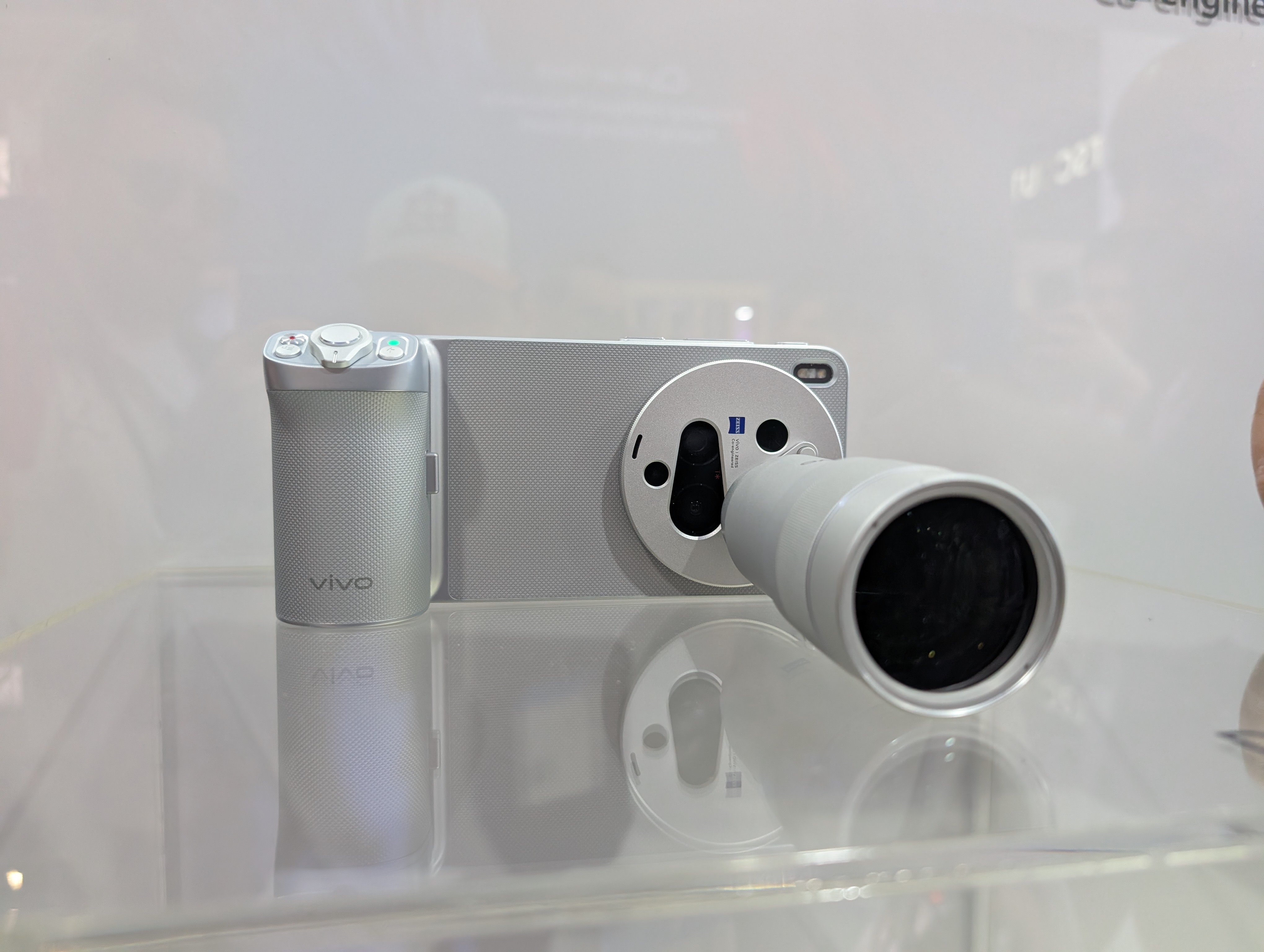 Устройство не показывают отдельно, вместо этого смартфон вставлен в специальный обвес, созданный с компанией SmallRig. Особенностью именно этого устройства Vivo является телеконвертер с эквивалентным фокусным расстоянием 400 мм. То есть речь идет о 17-кратном оптическом зуме.