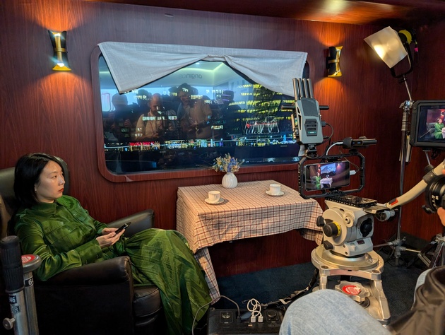 На выставке устройство показывают как в выключенном виде с обвесом, а также в специально созданной атмосфере киностудии с отдельным беспроводным просмотровым монитором, рельсой и выставленным светом.