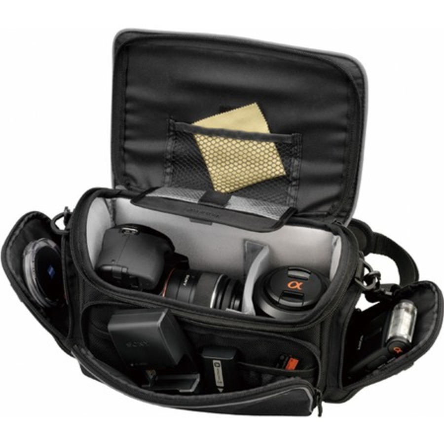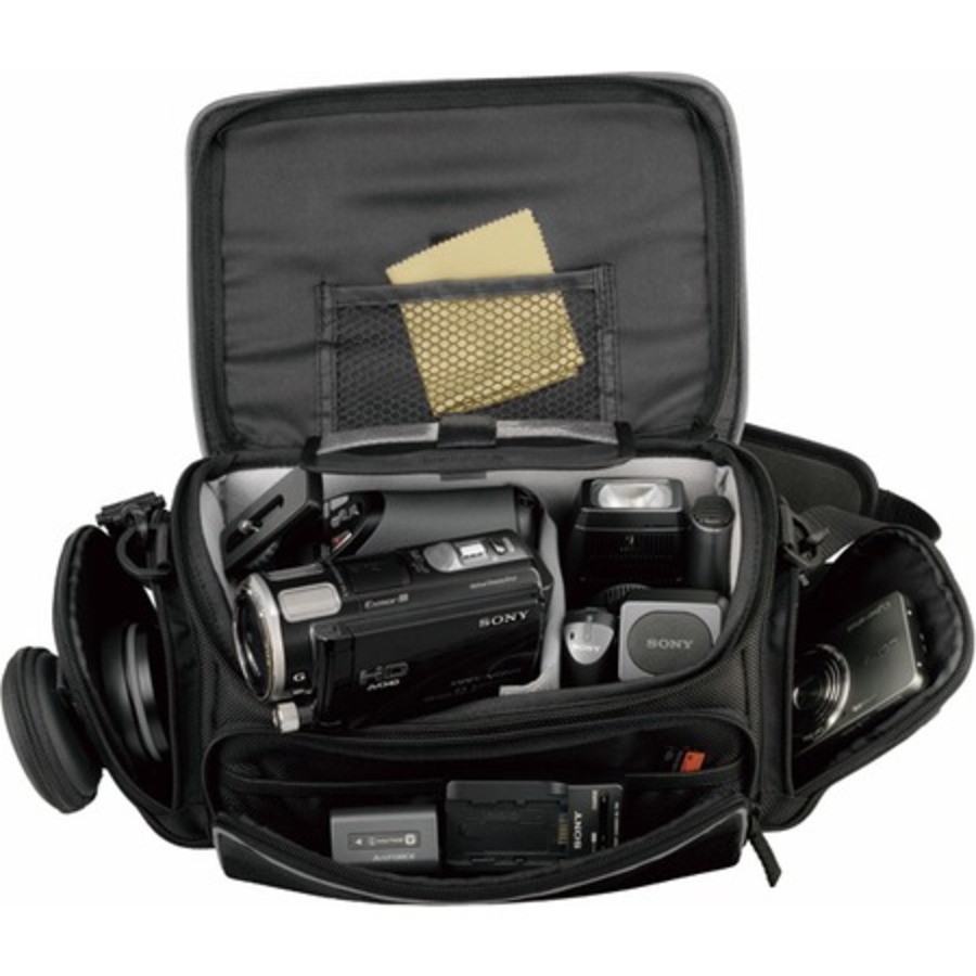 Удобный и вместительный чехол для хранения камеры и всех фото-аксессуаров в пути или дома. В чехол можно поместить видеокамеру или камеру DSLR с прикрепленными к ней объективами, аккумулятор, зарядное устройство, фильтр, кабели, пульт ДУ, микрофон и запасной объектив. Внутренняя перегородка создает отсеки для различных компонентов, а также обеспечивает дополнительную защиту для камеры/видеокамеры, запасных объективов и аксессуаров. В боковых карманах можно хранить компактную камеру или мобильный телефон. Дополнительный чехол для широкоугольного объектива можно прикрепить к боковому карману. Внутренний кармашек для хранения карты памяти Memory Stick™ или SD. Мощная подкладка для дополнительной защиты. Внутренний клапан для чистящей ткани. Съемный наплечный ремень. Крепление для штативаВопросы эксперту