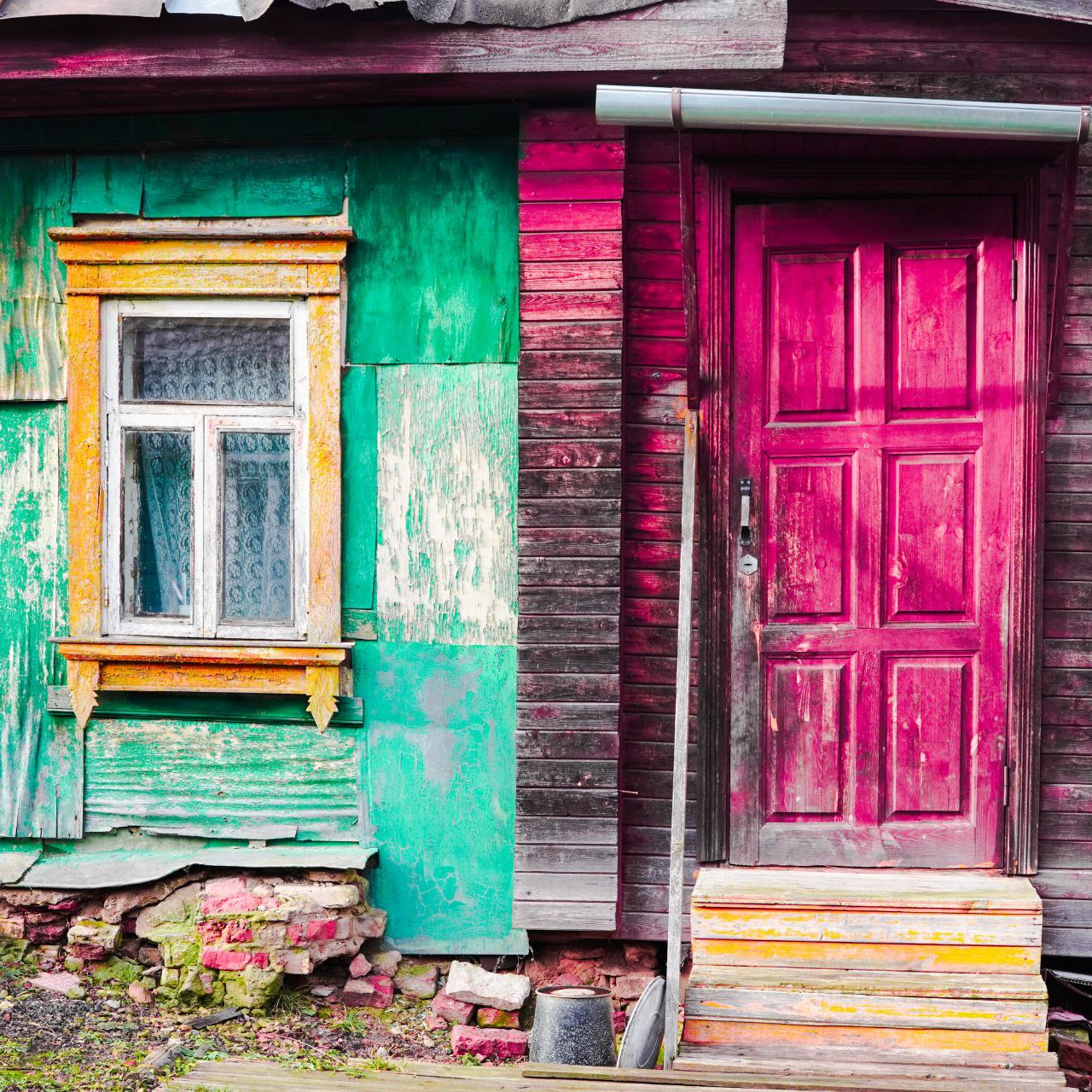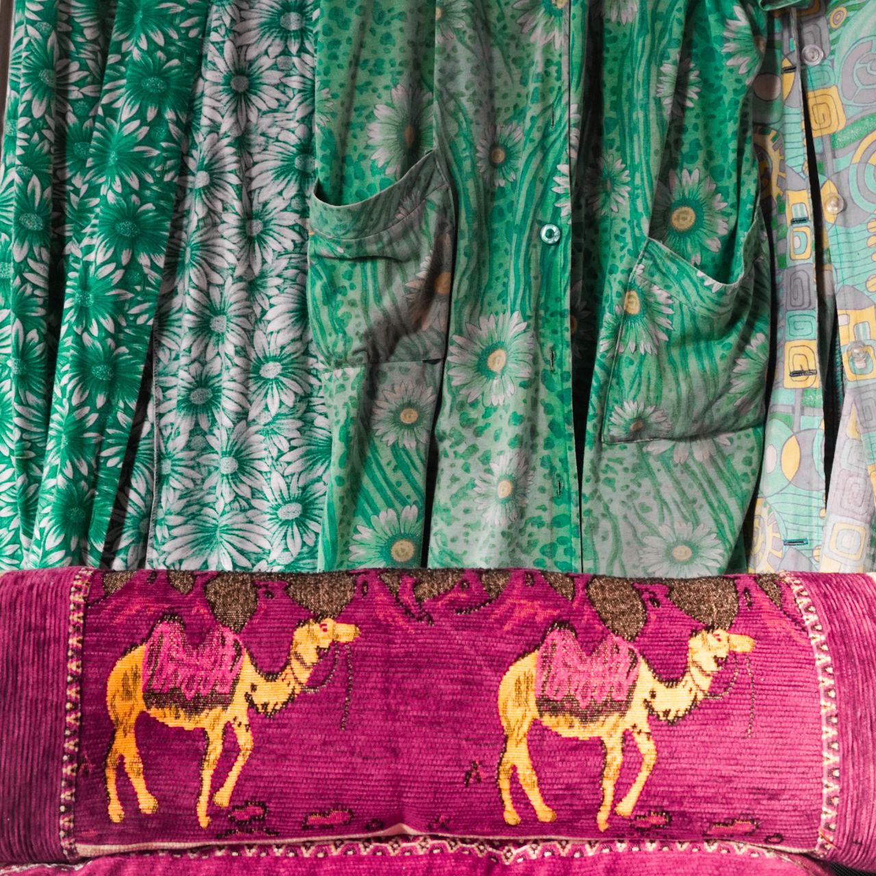 Таким образом, удалось пересказать историю дома, включив в экспозицию предметы единой цветовой гаммы (бирюза и фуксия). Деревянный фасад, старая плитка в ванной, ковры, электроприборы, личные вещи бабушки у постсоветского зрителя вызывают чувство ностальгии.