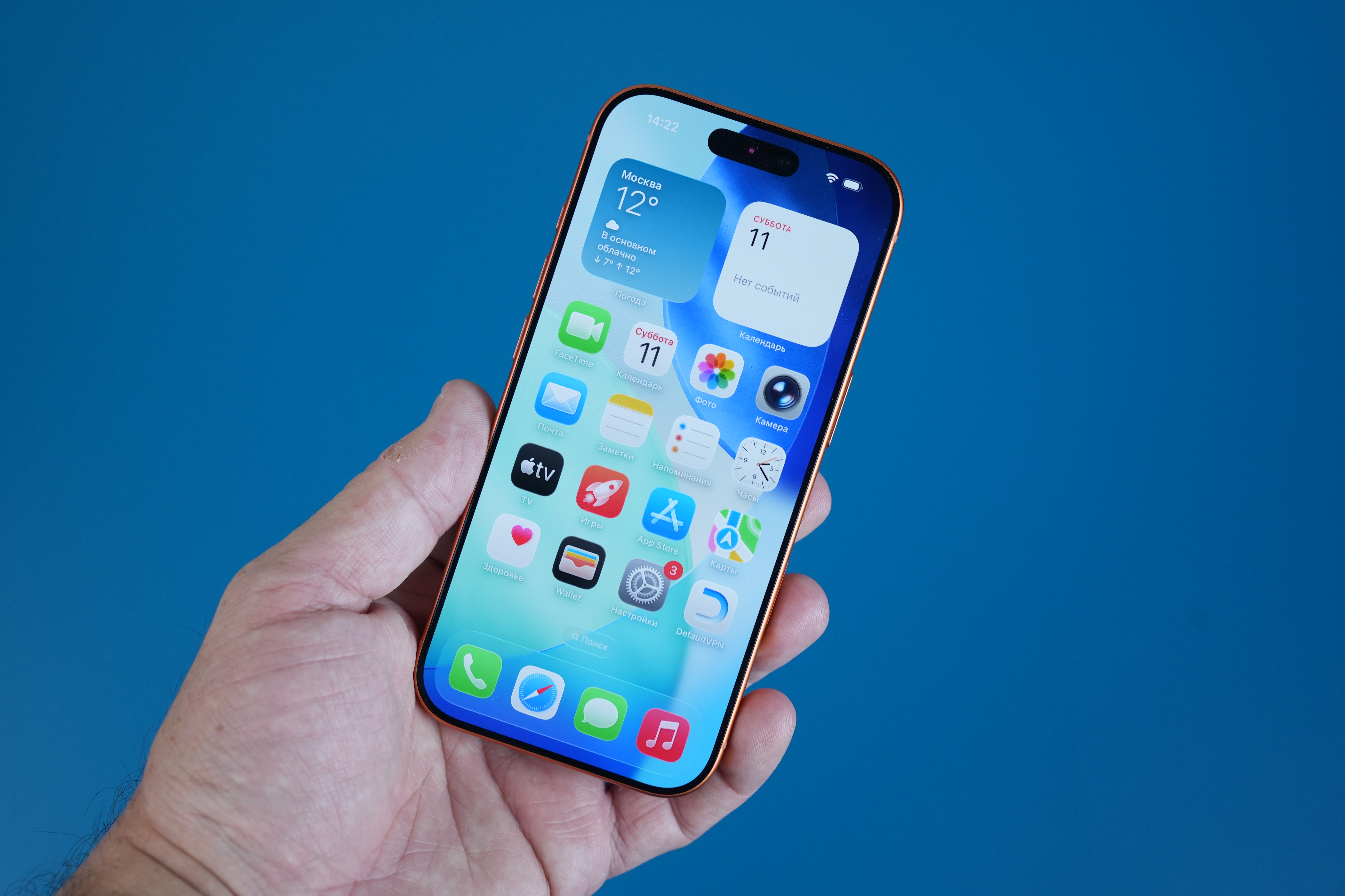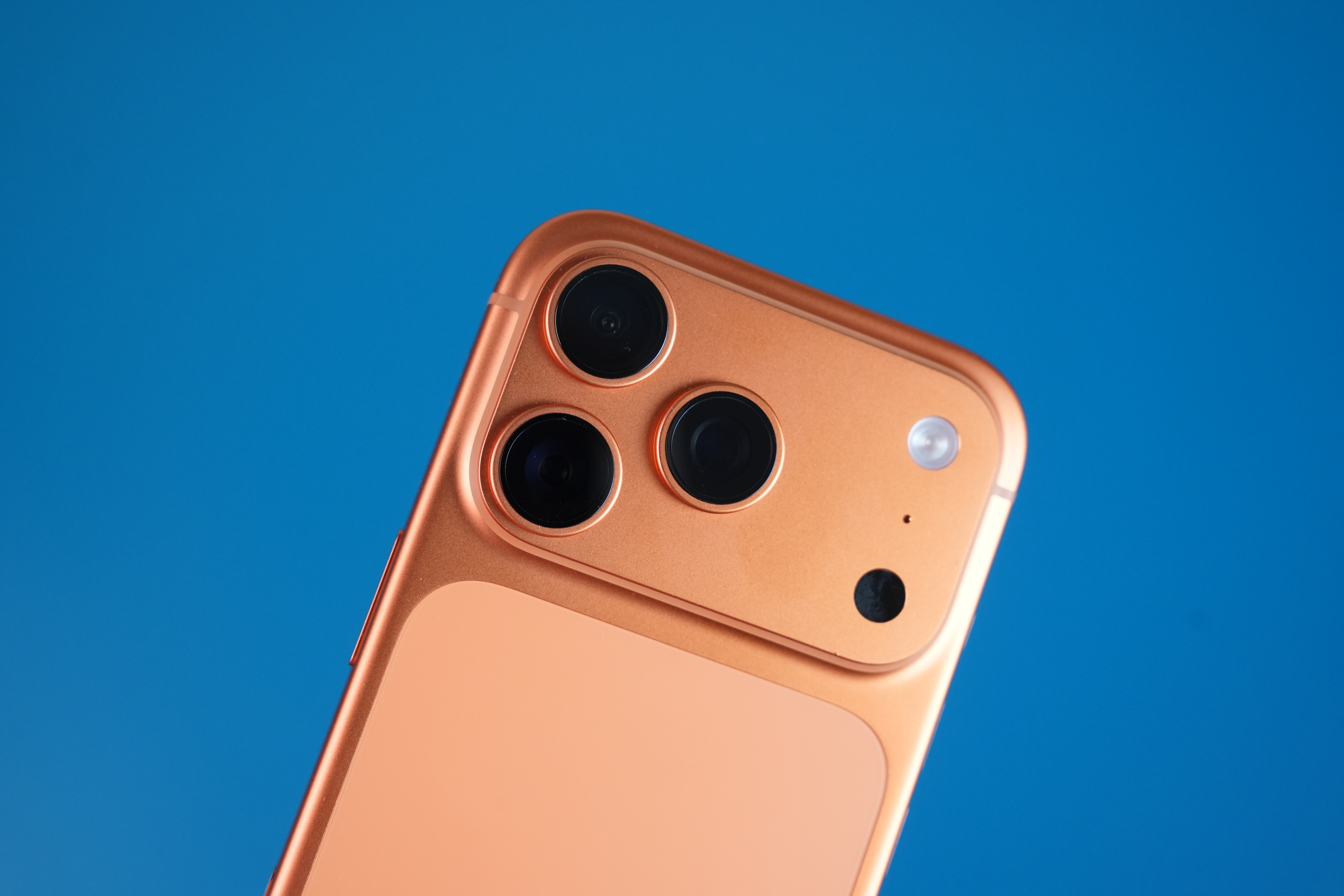 Для теста был выбран iPhone 17 Pro в самом трендовом, оранжевом цвете. Мы привыкли, что Apple выпускает линейку Pro в «серьёзных» цветах, а обычные модели — в ярких.